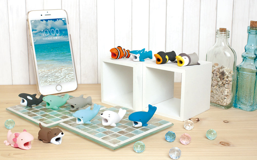 CABLE BITE animals attach to your charging cable and appear to be biting onto your smartphone.